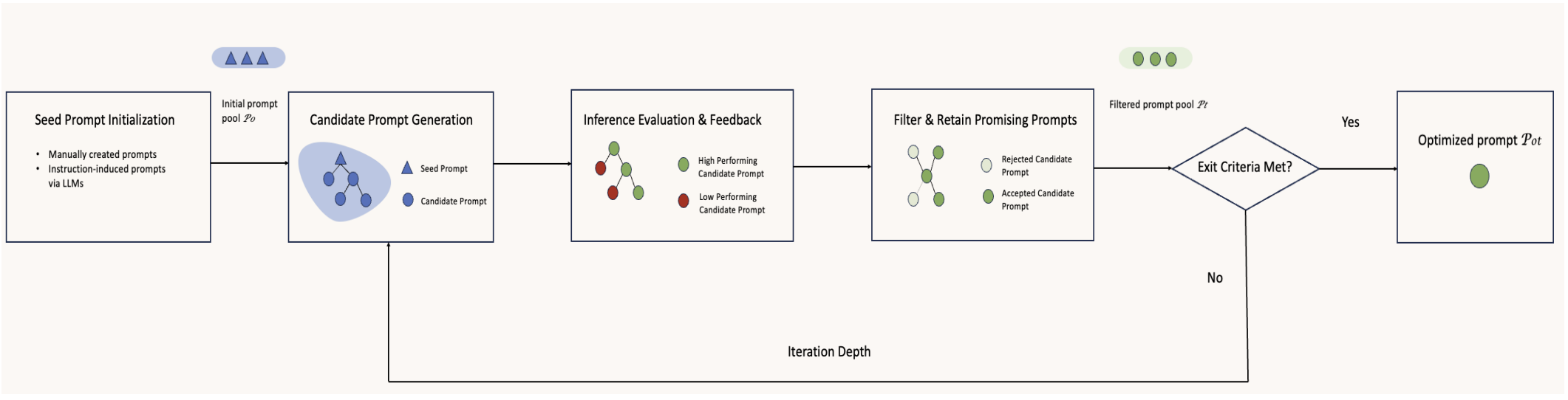 Automatic prompt optimization (APO) is a reinforcement learning technique used to improve task performance for AI language models. At each iteration, new instruction prompts are generated and scored against your AI system using your validation set. Promising prompts are kept and used to seed the next generation of prompts. The goal is to find the prompt that maximizes the AI system's performance on the evaluation metric you define.